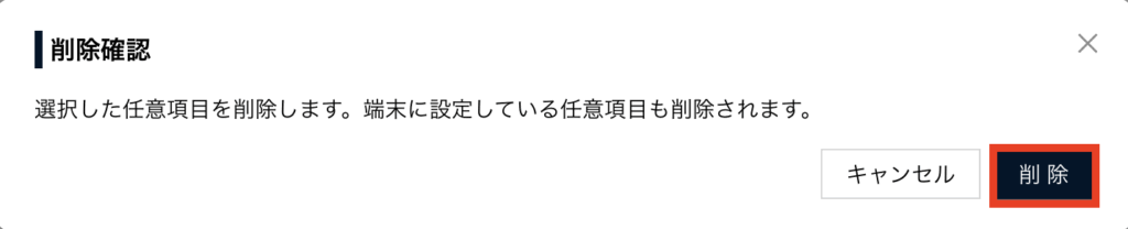 「任意項目管理」画面で、削除する任意項目の行の「削除」をクリックします。