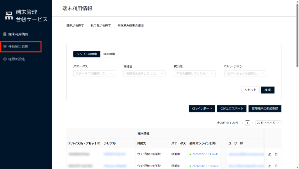本機能は、「端末管理台帳サービス」が利用登録されている、学校設置者(教育委員会など)が使用できます。