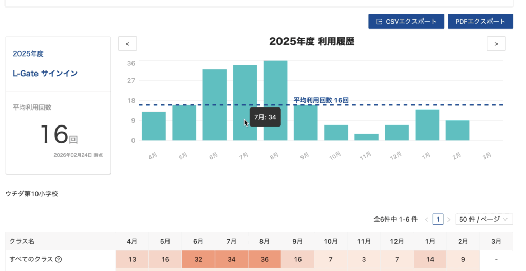 グラフ上にマウスカーソルを合わせると、該当箇所の利用回数が表示されます。ページ下部の集計表を参照しなくても、グラフの内容を直感的に確認できます。