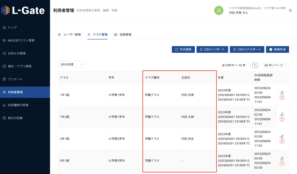 - ユーザーに「在籍クラス」の情報が追加されます。