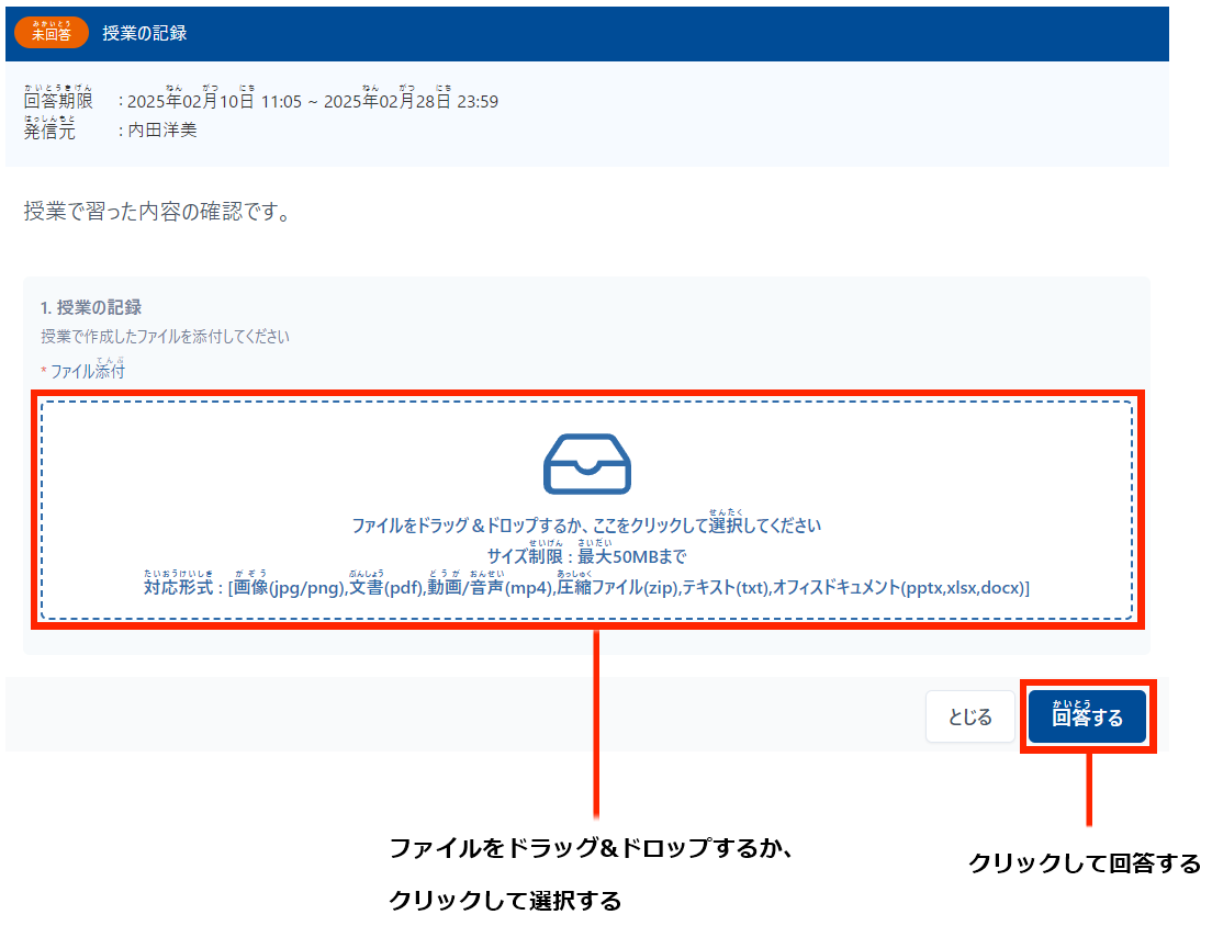 回答形式がファイル添付の場合