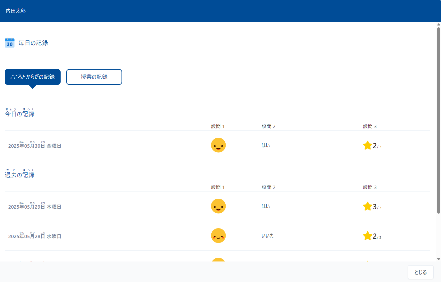 実施期間ではない毎日の記録は、児童生徒画面に表示されません。
